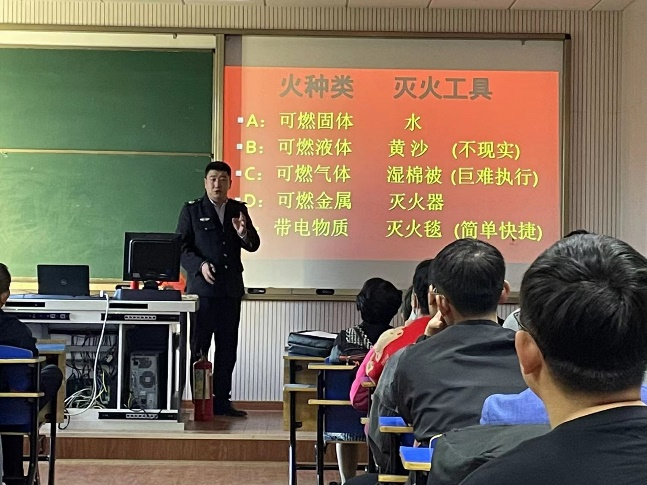随后,张警官带领师生们进行实地消防演练,指导员工们如何正确使用干粉灭火器及水基型灭火器。