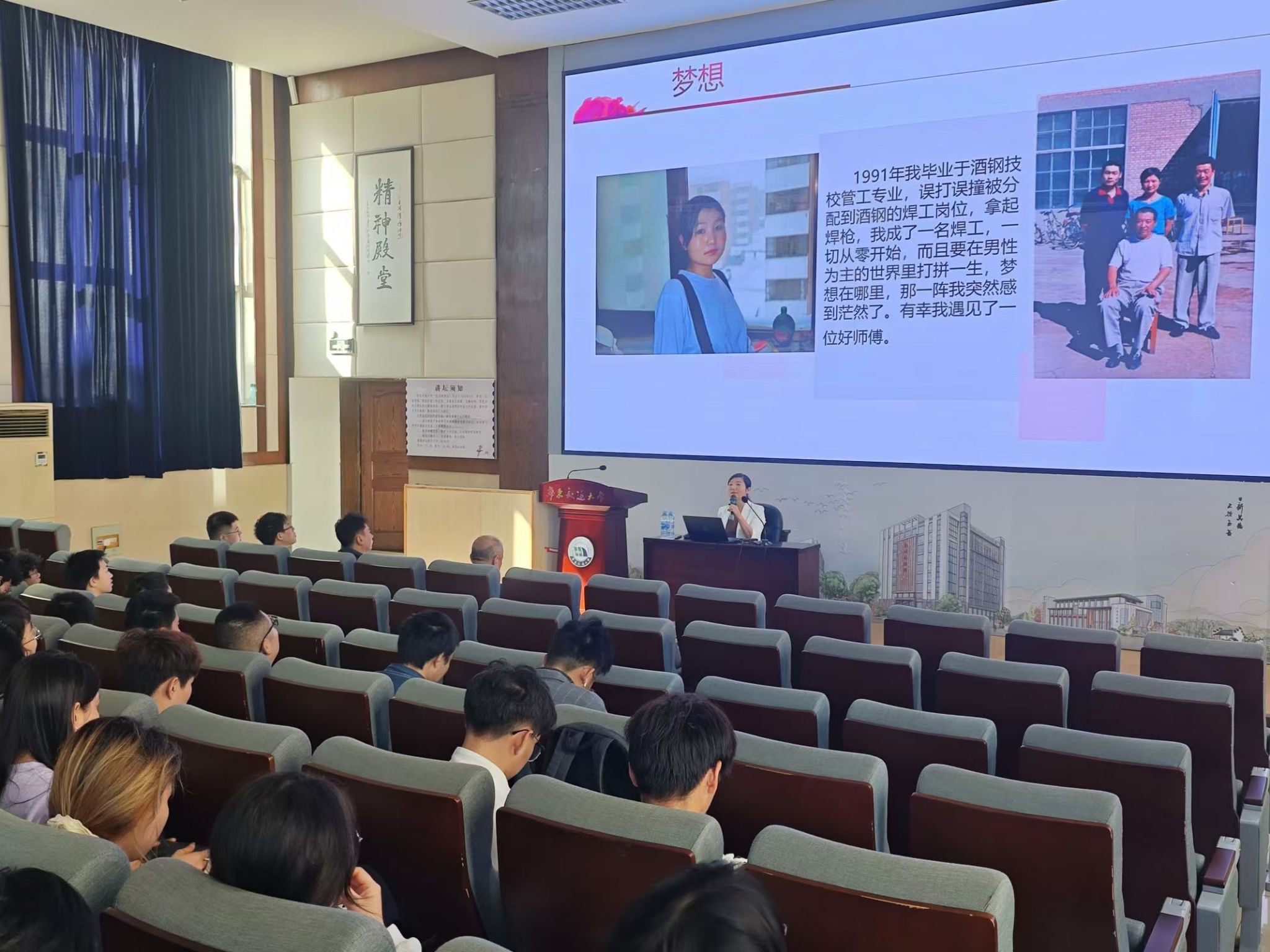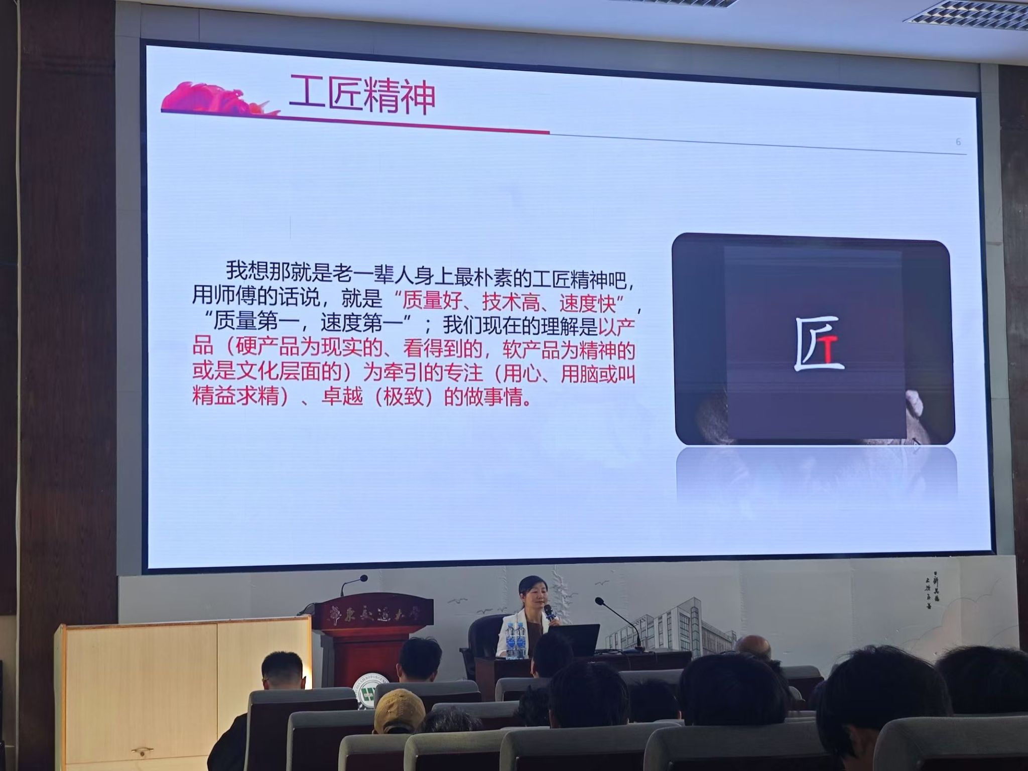吕杰经理在报告中深入浅出,用自己的亲身经历为例,向同学们表达了自己的人生感悟与理想抱负。她在报告中指出:“同学们要认识到职业教育的重要性,因为无论有多少发明、创造和设计,最终都要通过制造来完成。那么这些制造者就是我们,就是我们专业培养出来的高素质技能人才!就是能够挺起中国制造脊梁的能工巧匠!”吕杰经理还向同学们传达了工匠精神的含义:以产品(硬产品为现实的、看得到的,软产品为精神的或是文化层面的)为牵引的专注(用心、用脑或叫精益求精)、卓越(极致)的做事情。