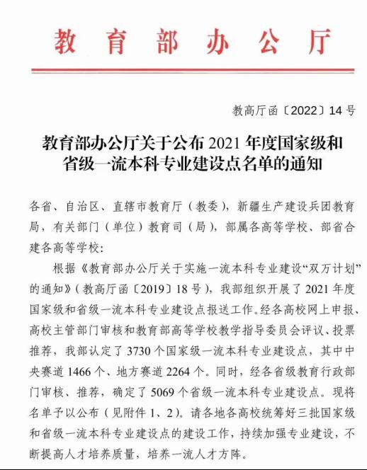 近日,教育部办公厅发布了《关于公布 2021 年度国家级和省级一流本科专业建设点名单的通知》(教高厅函〔2022〕14号),公司材料成型及控制工程专业获批2021年度国家一流本科专业建设点。此前,材料成型及控制工程和高分子材料与工程专业均获批省级一流专业建设点,学院2个专业分别获批国家级、省级一流专业建设点。