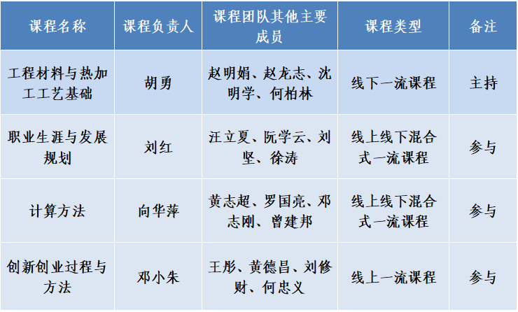 公司5位教师主持/参与的4门课程成功入选,其中由胡勇教授负责申报的《工程材料与热加工工艺基础》入选线下一流课程,刘红教授负责申报、刘坚老师参与申报的《职业生涯与发展规划》(所属部门:招就处)和黄志超教授参与申报的《计算方法》分别入选线上线下混合式一流课程,何忠义教授参与申报的《创新创业过程与方法》入选线上一流课程,这些课程的成功入选实现了公司国家级一流本科课程零的突破,标志着公司继国家一流本科专业建设点获批后在本科专业建设上再次取得了新的突破!