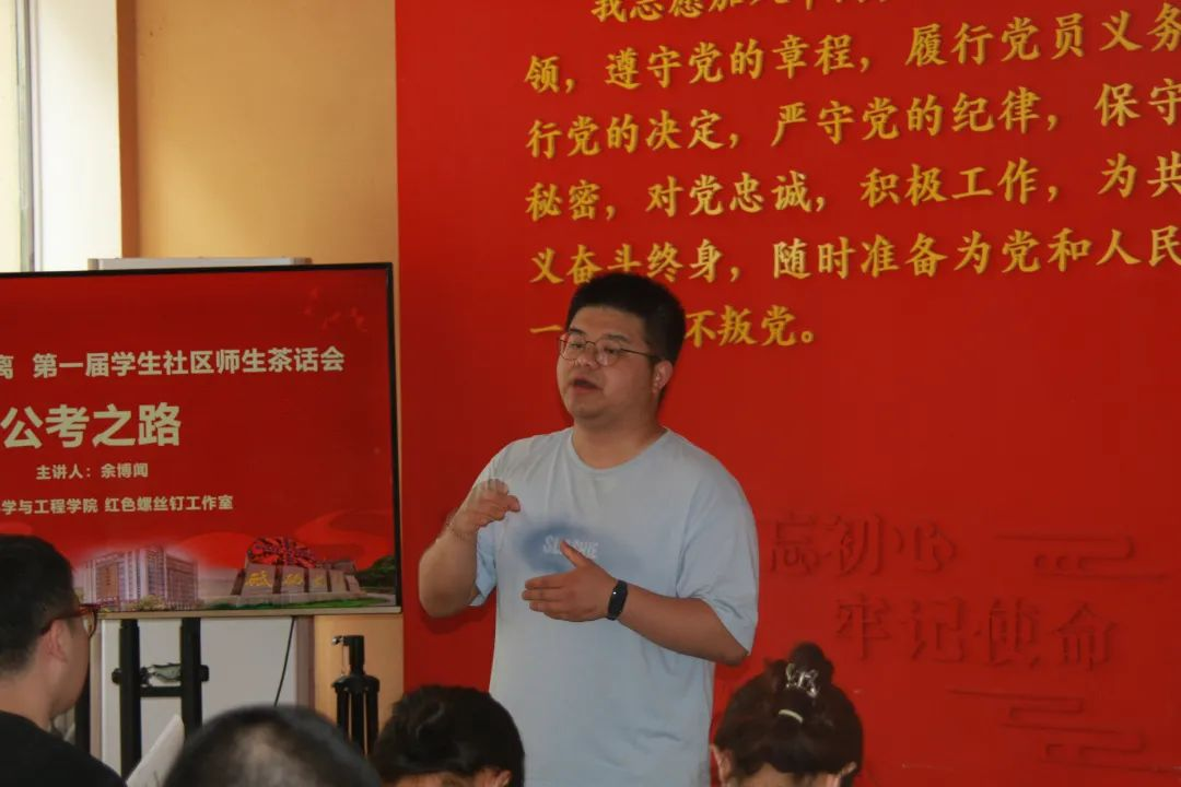 5月26日下午,beats365唯一官方网站“语”你零距离|第一期员工社区师生茶话会在员工“一站式”服务中心一楼大厅如期举行,聚焦同学们感兴趣的话题——考研考公,黄姚逸学长及余博闻学长为大家带来了干货满满的经验分享。活动由孔祥云老师主持。