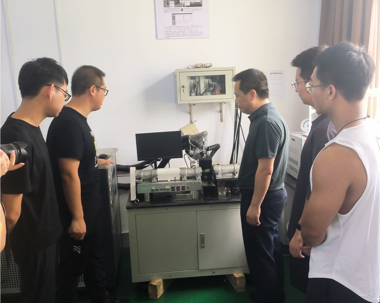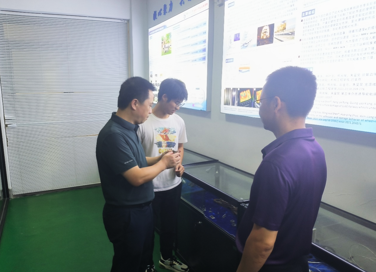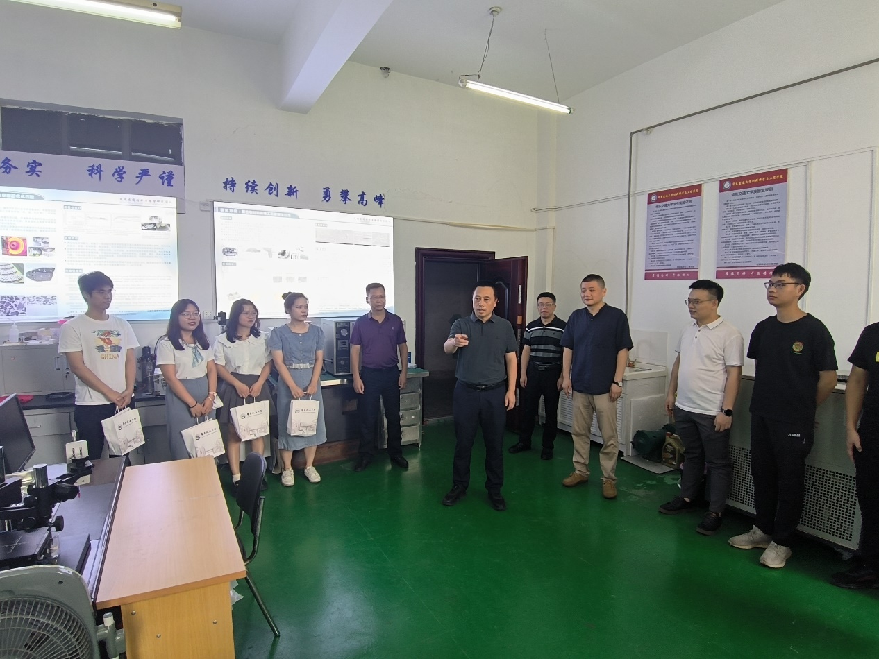 肖乾副董事长一行来到公司先进交通材料摩擦学研究团队实验室,亲切的了解同学们暑期生活、学习和科研情况,对同学们当前的学习进度与规划给予了指导和建议,并叮嘱同学们在开展科研实验的同时要注意劳逸结合、加强体育锻炼,平时多与导师、辅导员以及亲友联系,提高安全意识。