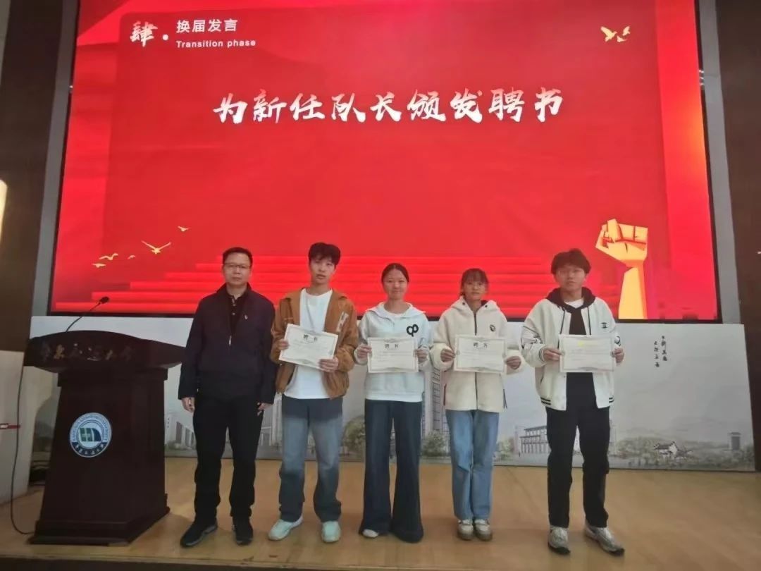 在现任田径队队长张书文进行工作总结后,党委副书记胡国庆老师给新任队长饶凯颁发聘书。