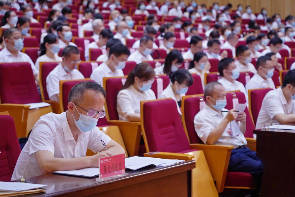 代表们认真听取中国共产党BEAT365英国官网网站第五届委员会工作报告。(马莉娅 摄)